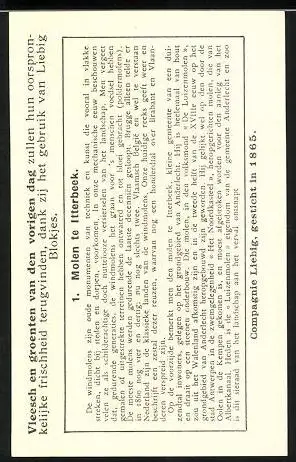 Sammelbild Liebig, Itterbeek, Windmolens in Belgie, Windmühle