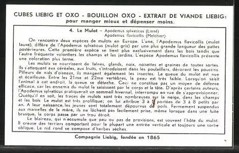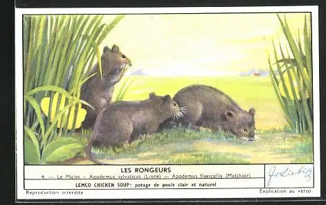 Sammelbild Liebig, Les Rongeurs, Le Mulot, Apodemus sylvaticus, Apodemus flavicollis