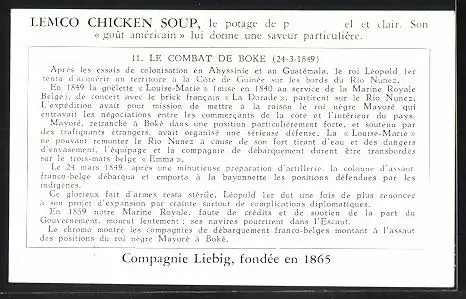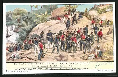 Sammelbild Liebig, Tentatives D`Expansion Coloniale Belge, Le combat de Boké
