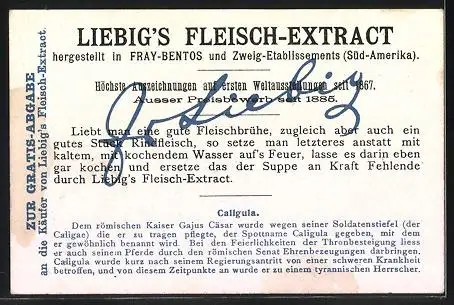 Sammelbild Liebig`s Fleisch-Extrakt, der Senat huldigt dem Pferd Kaiser Caligulas
