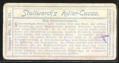 Sammelbild Stollwerck, Die Kronenschnepfe auf der Jagd