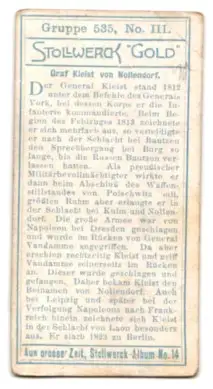 Sammelbild Stollwerck Gold, Graf Kleist von Nollendorf in Uniform