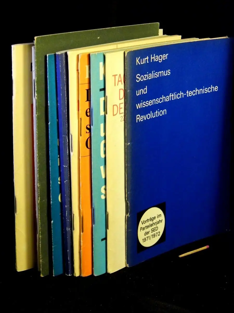 WISSENSCHAFTSGESCHICHTE, - enthält: Kurt Hager: Sozialismus und wissenschaftlich-technische Revolution + Die Aufgaben der Gesellschaftswissenschaften in unserer Zeit + der IX. Parteitag und die Gesellschaftswissenschaften + Die entwickelte sozialistische Gesellschaft + Grundfragen des geistigen Lebens im Sozialismus + Wissenschaft und Technologie im Sozialismus + Erich Honecker: Fragen von Wissenschaft und Politik in der sozialistischen Gesellschaft + Hermann Klare: Die Wissenschaft und die gesellschaftliche Entwicklung des Sozialismus + Leo Stern: Die Rolle der Gesellschaftswissenschaften für den Fortschritt der Gesellschaft + Die gesellschaftliche Verantwortung des Wissenschaftlers + Die Wissenschaft und der Fortschritt der Menschheit + Johannes Hörnig: Zur Konzeption der Entwicklung von Naturwissenschaft und Technik. Die Anforderungen an die Planung und Leitung der Forschungsarbeit. + Helmut Schneider: Zum Hauptinhalt der sozialistischen Wissenschaftsorganisation - leicht bis deutlich berieben und bestoßen mit Randläsuren, leicht bis deutlich nachgedunkelt, teils mit Anstreichungen - internlp072-2961 - Hefte.