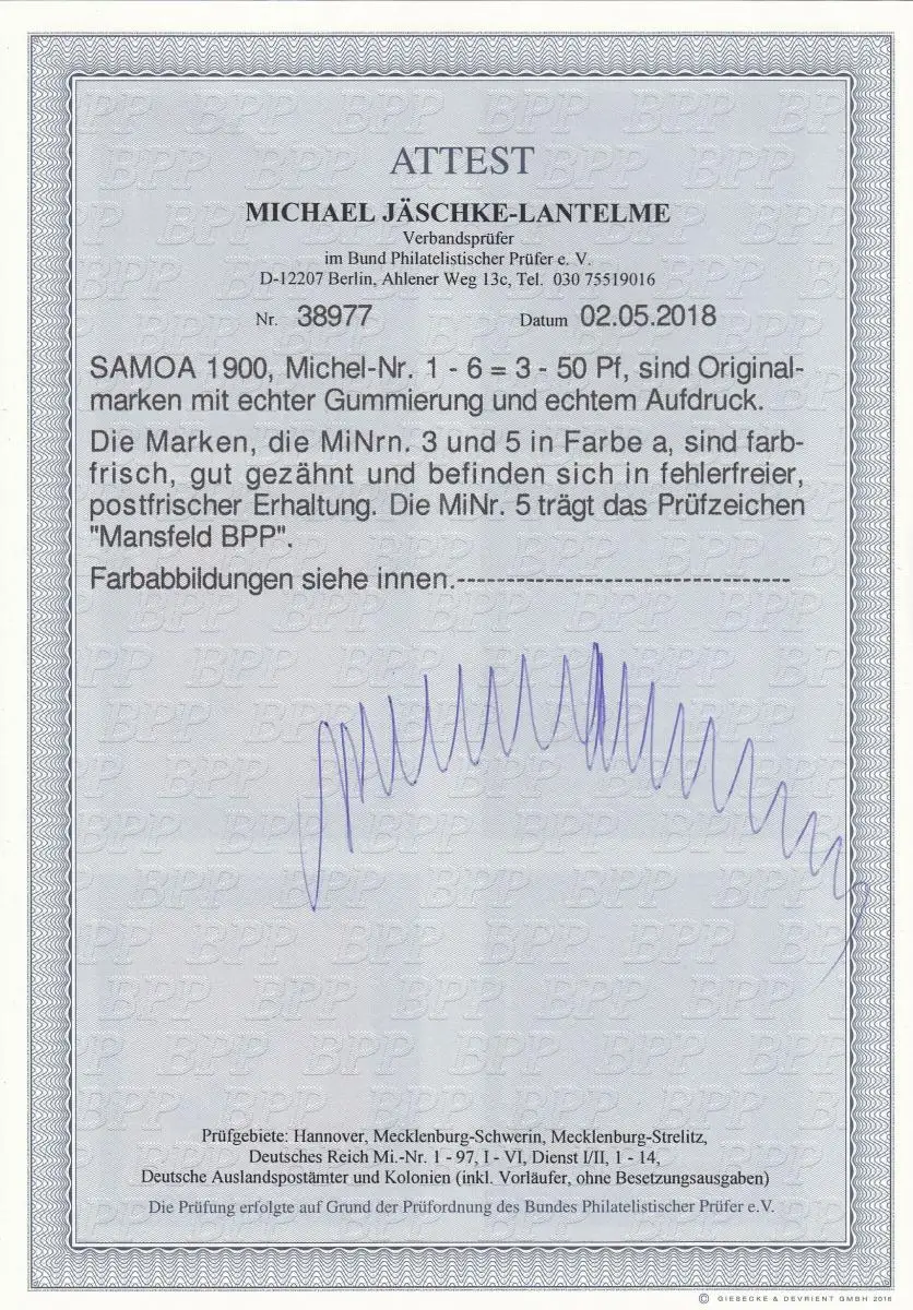 Samoa: MiNr. 1 - 6, postfrisch, BPP Attest