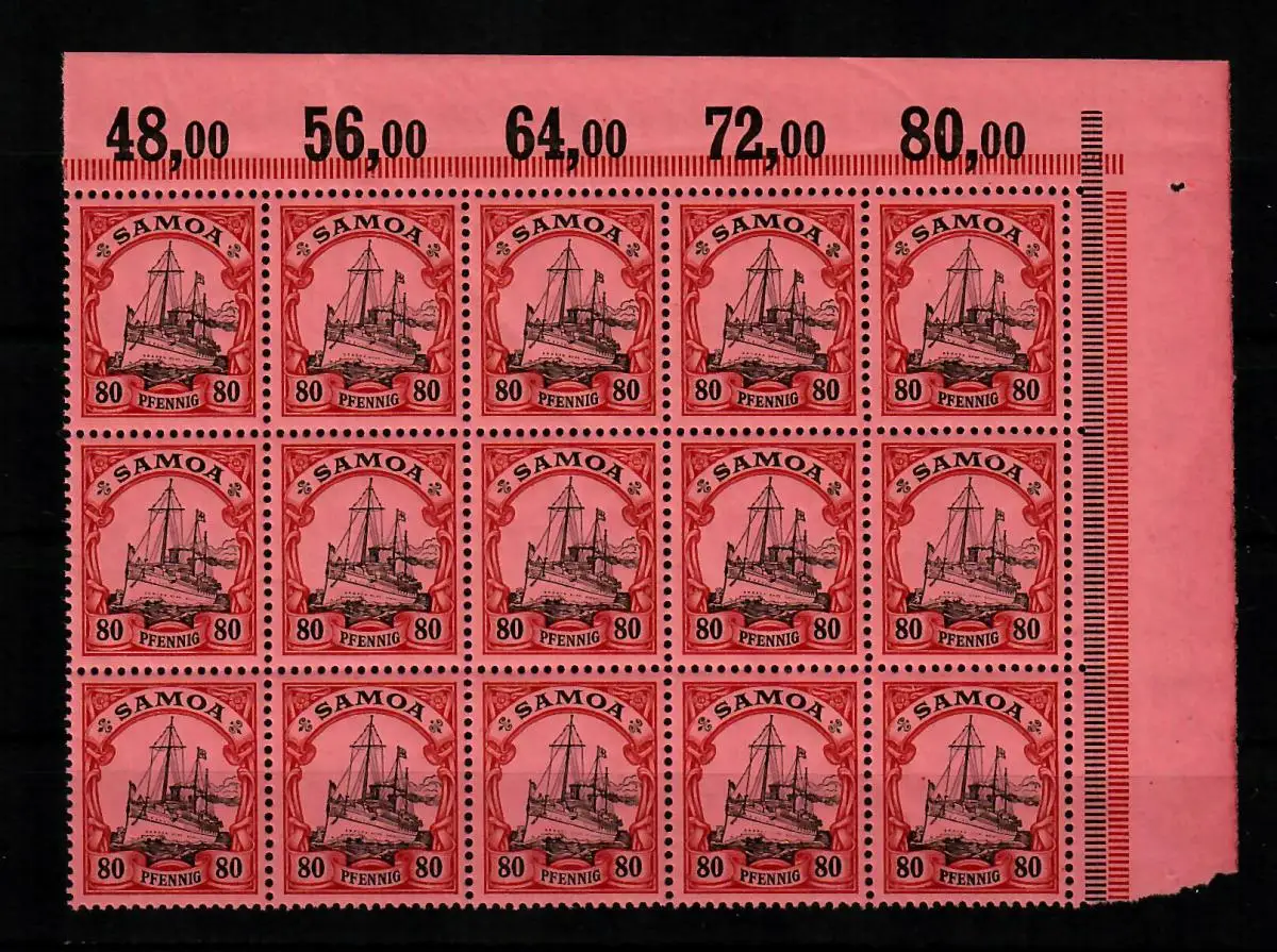 Samoa: MiNr. 15I, 15er Block vom Eckrand, postfrisch, **