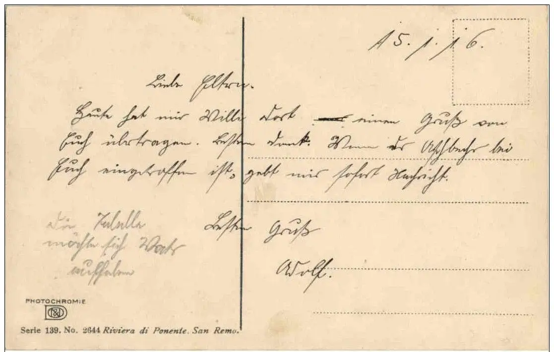 Danke. Alles Bestens. Können Sie mir allenfalls mitteilen, aus welchem Jahr die Postkarte stammt? Besten Dank.