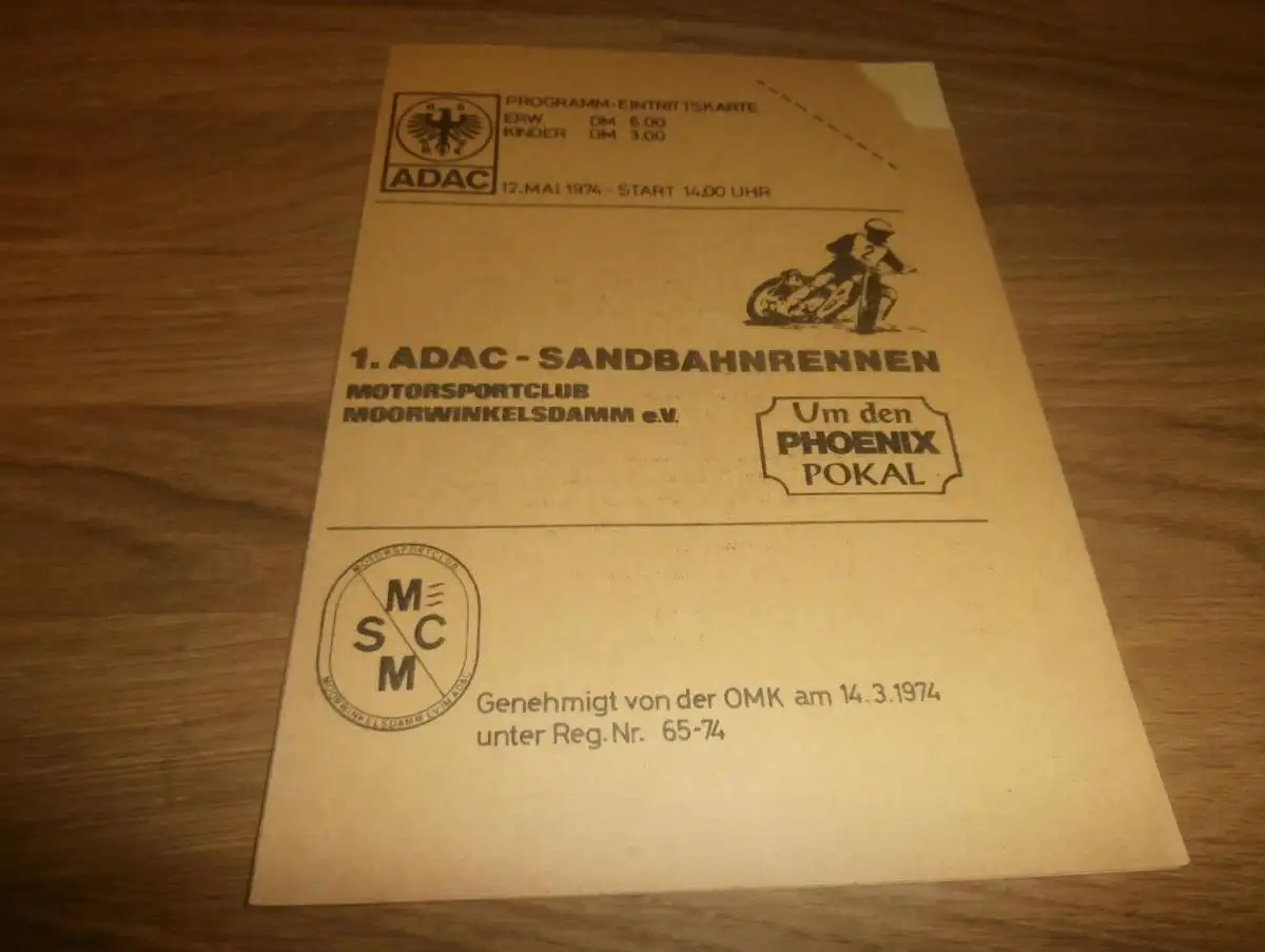 Sandbahn Moorwinkelsdamm 12.05.1974 , Sandbahnrennen , Programmheft / Programm / Rennprogramm , program !!!