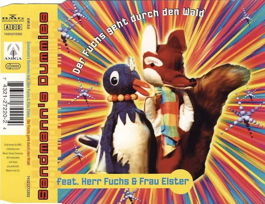 CD Single Sandmann's Dummies - Der Fuchs Geht Durch Den Wald, feat. Herr Fuchs & Frau Elster; Label beschriftet, Zustand CD VG+ Hülle VG+; Made in Europe 1995 Amiga 74321 27220 2, Tracks Radio Edit 3:43, Radio Soft Mix 3:56, Trance Mix 4:33, Ext. Dance Mix 4:37