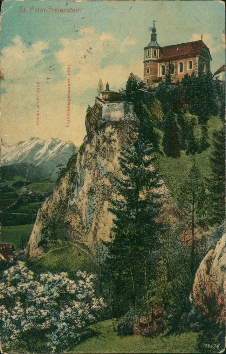 Sankt Peter-Freienstein Ortsansicht mit Kirche auf dem Berg 1921