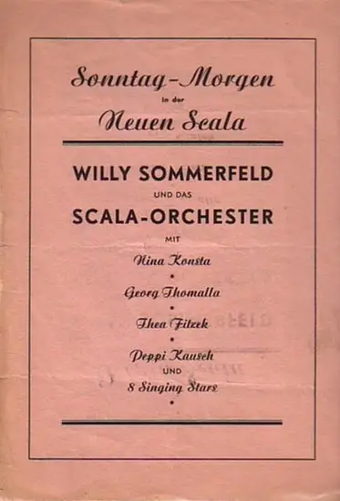 Scala: Programm - Zettel zu: Sonntag - Morgen in der Neuen Scala: Willy Sommerfeld und das Scala - Orchester mit Nina Konsta, Georg Thomalla, The Fitzek, Peppi Kausch und 8 Singing Stars u.a. Neue Scala 1946.