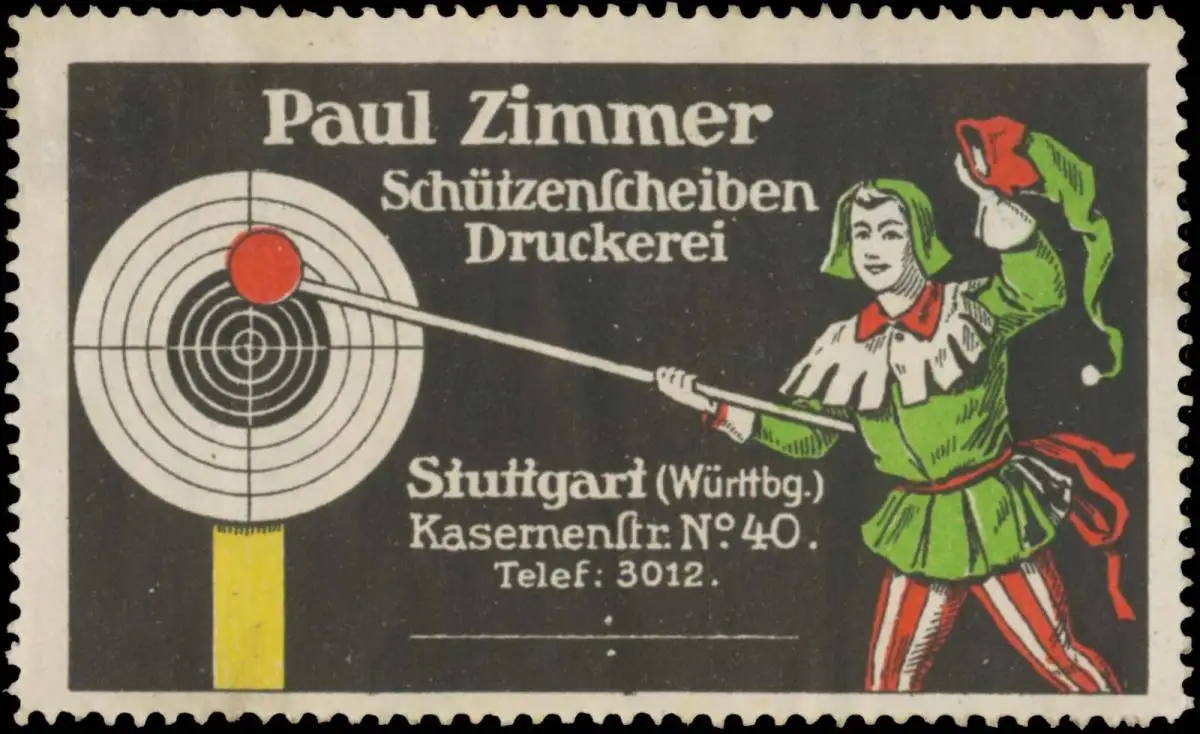 Schießen, Kasernenstraße 40, grüne Jacke, Größe/Zustand: 4x7 , guter Zustand, Original alte Reklamemarke die seinerzeit für die Werbung benutzt wurde