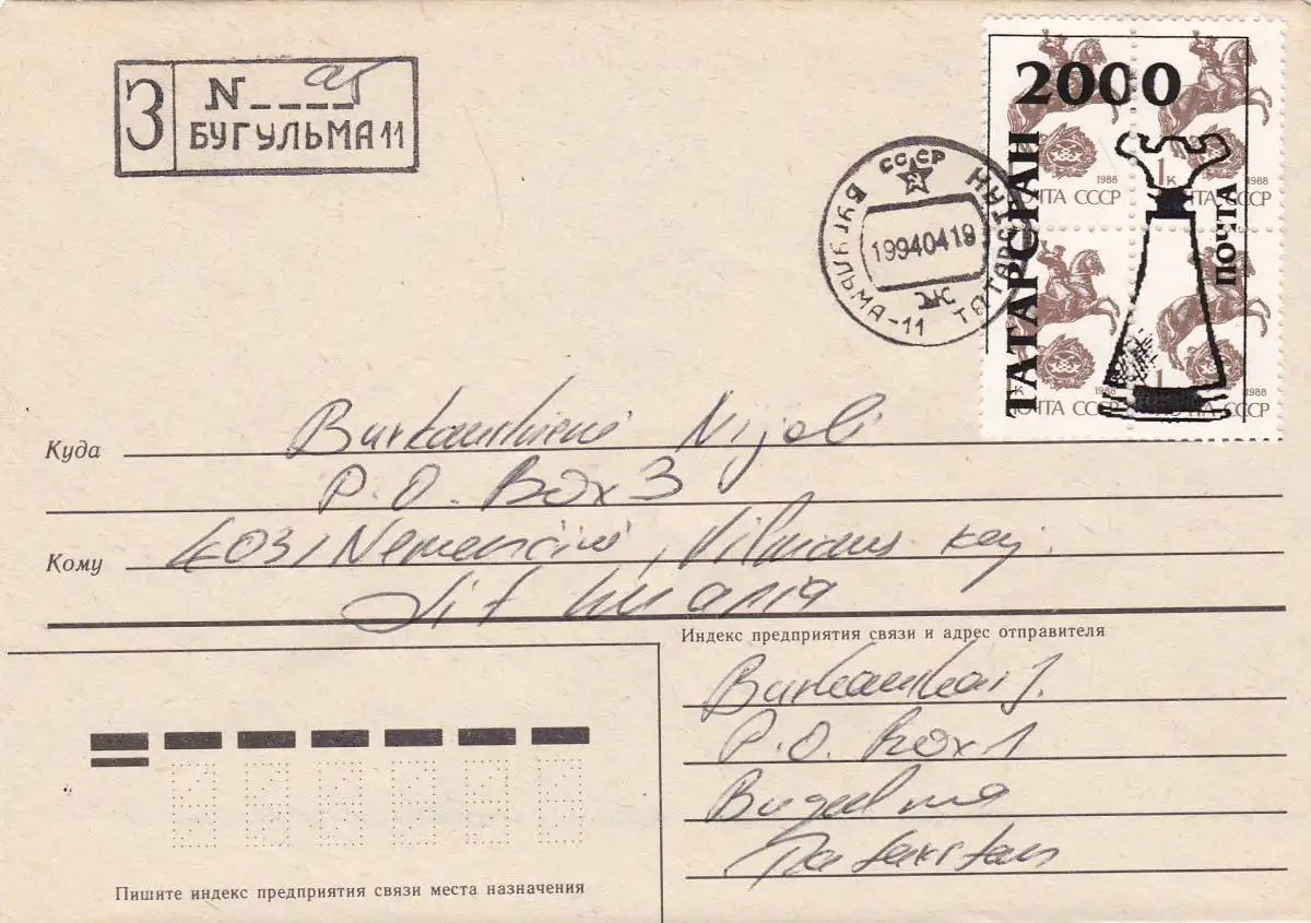Schach: Russland 1994, Einschreiben