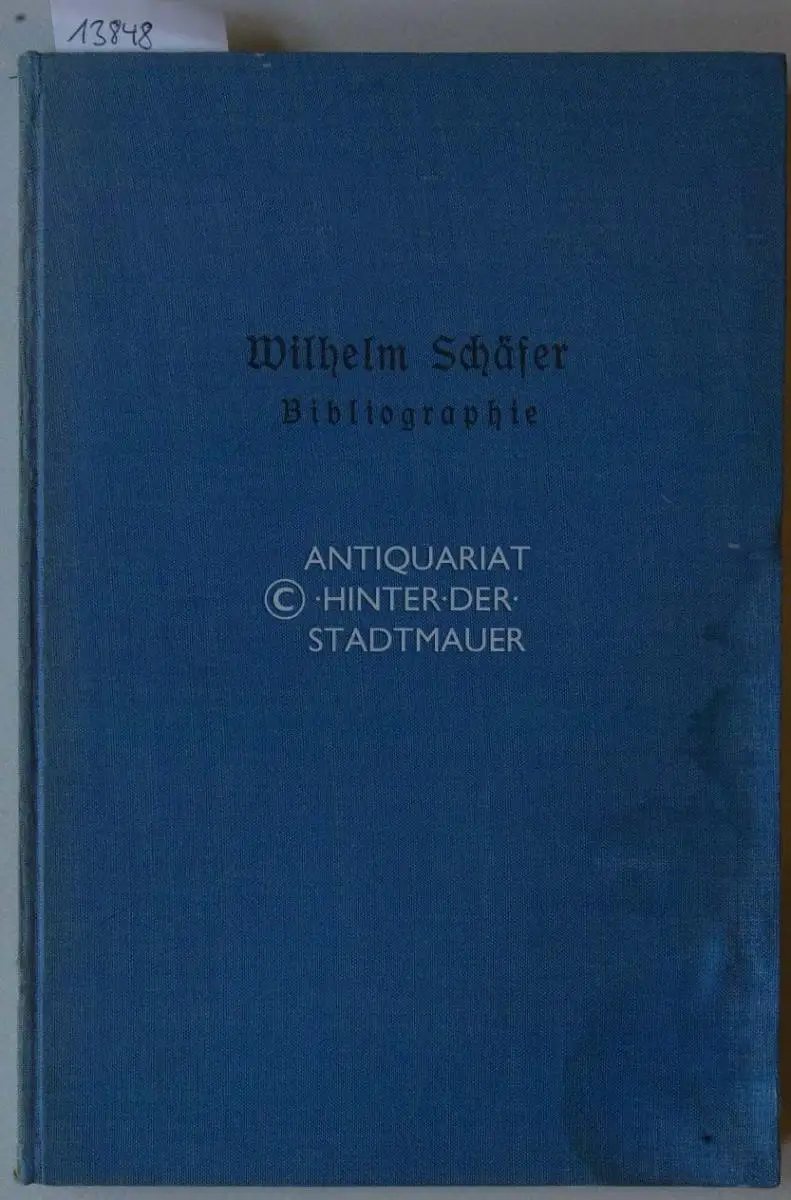 OLn., Farbprägung; ohne Umschlag. 1 Kupferdruck, 12 Beilagen (Titelseiten v. Publikationen w. Schäfers). Rücken gebleicht, berieben mit einigen kl. Fehlstellen, oberes Kapital berieben/bestoßen; großer Wasserfleck auf der Vorderkante der beiden Deckel; der Vorderdeckel ist infolge an dieser Ecke etwas verzogen, das Einbandleinen liegt hier etwas lose; vorderes Vorsatzblatt ebenso etwas gewellt. Ansonsten innen ohne erkennbare Wasserflecken, sauber und fest; gutes Exemplar. Text in Fraktur