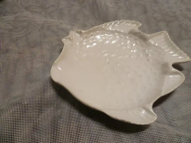 Schälchen Art Deko 1940/41 im Fischdekor Wandteller Weißporzellan gemarkt Zeptermarke 1875 - 1944