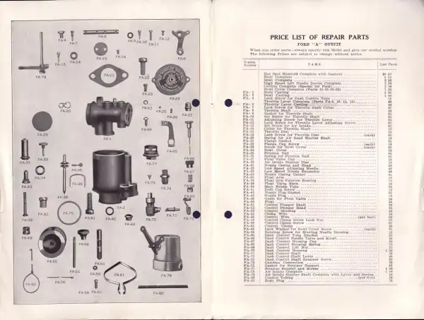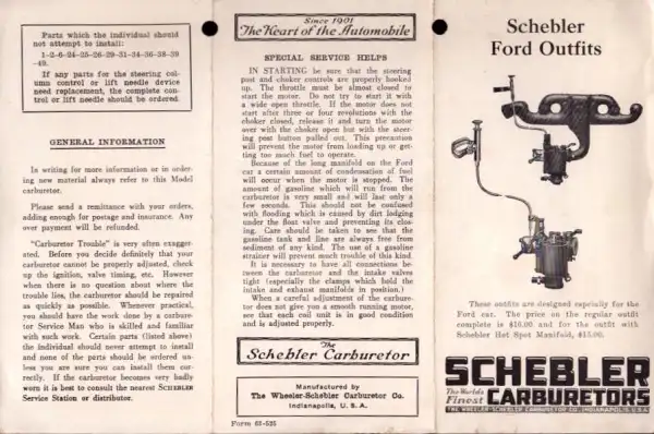 Schebler Vergaser Modell Ford A Ersatzteilliste 5.1925