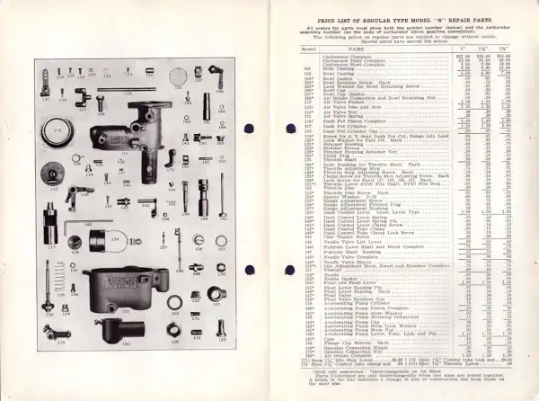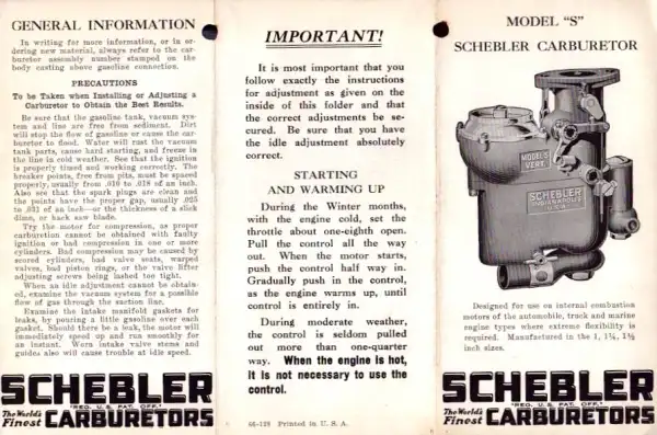Schebler Vergaser Modell S Ersatzteilliste 1.1928