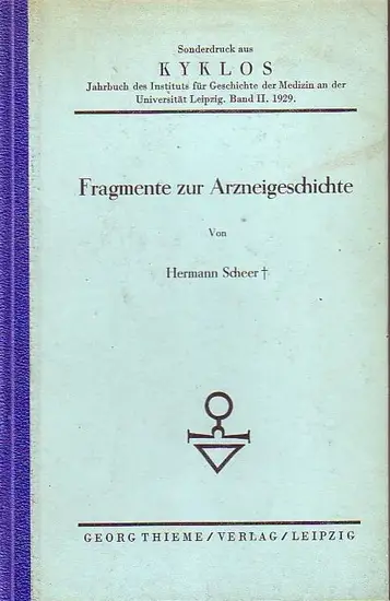 Scheer, Hermann: Fragmente zur Arzneigeschichte. Sonderdruck aus 'Kyklos'. Band II, 1929.