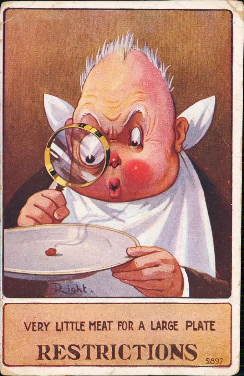 Scherzkarte VERY LITTLE MEAT FOR A LARGE PLATE RESTRICTIONS 2