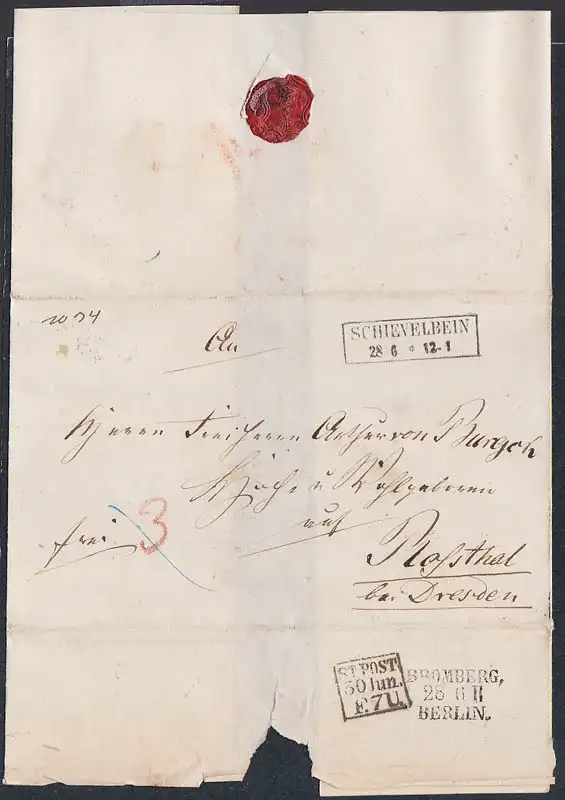 Schieveleben in Pommern mit Bahnpost Bromberg - Berlin 28 6 II und Stadtpost -St