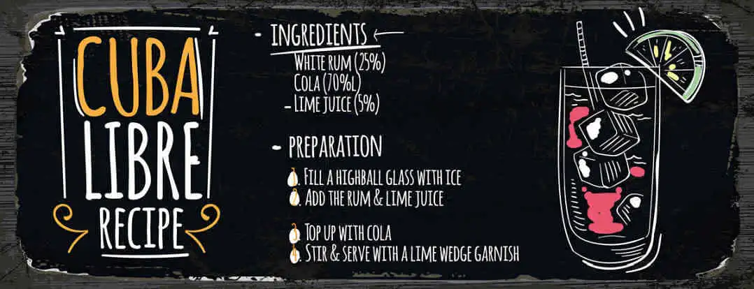 Schild Cuba Libre Cocktail Rezept Bar Alkohol Drink Rum Cola 27x10 Blech od.Holz
