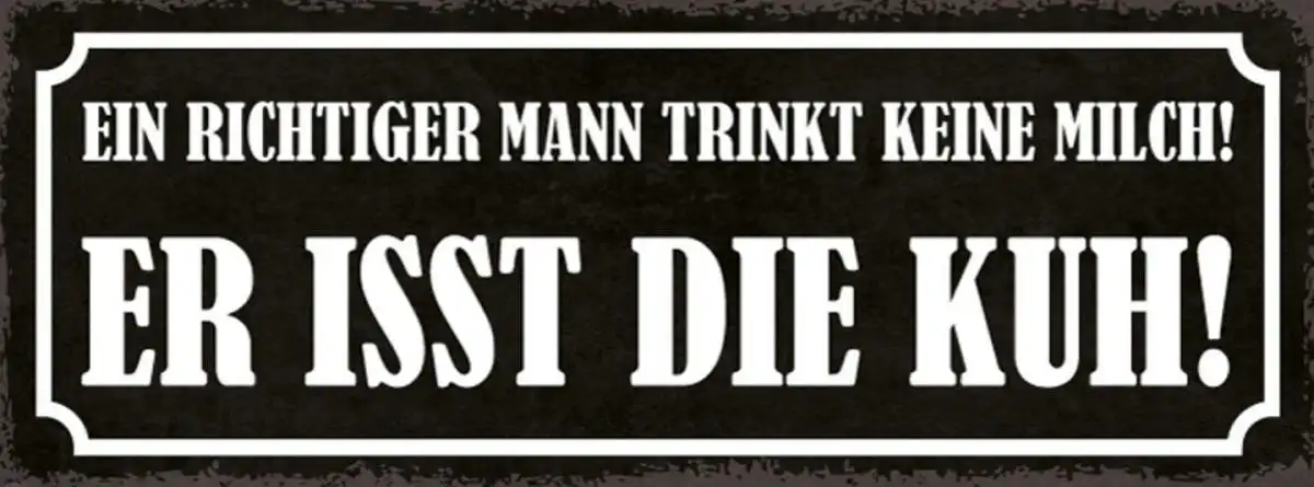 Schild Ein Richtiger Mann Trinkt Keine Milch Er Isst Die Kuh 27x10 Blech od.Holz