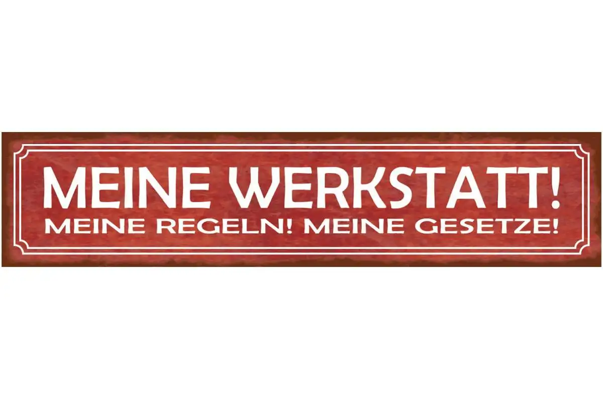 Schild Meine Werkstatt Meine Regeln Meine Gesetze Werkzeug 46 x 10 Blech od.Holz