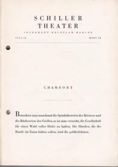 Schillertheater Berlin. - Boleslaw Barlog (Intendanz). - Friedrich Schiller nach Picard: Der Parasit oder Die Kunst, sein Glück zu machen. Programmheft 28 der Spielzeit 1953 / 1954. Inszenierung, Bühnenbilder und Kostüme: Willi Schmidt. - Musik: Kurt Heus