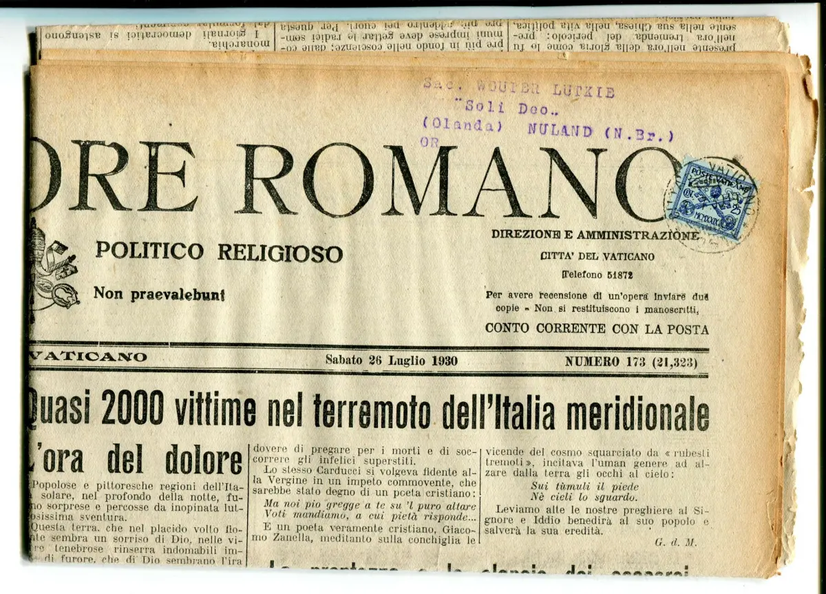 - Schlichtung Cent. 25 Nr. 4 isoliert auf kompletter Zeitung Osservatore Romano reiste nach Holland - Uncommon Nr. 1253/A