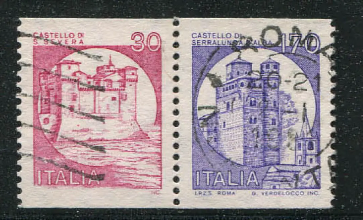 Schlösser Sorte Rollenmarke gebraucht - Schlösser Lire 30 + 170 die beiden Werte aus Spule mit Sorten - Briefmarke ab Lire 30 ohne die Schrift unten mit dem Namen des Graveurs (Sächsische Fach Nr. 1150 Aa) - Schön und ungewöhnlich - Nr. 1044 / OUTLET