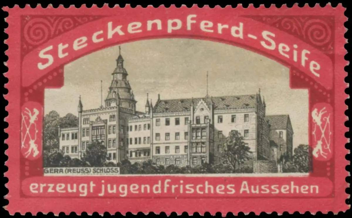 Steckenpferd-Seife, erzeugt jugendfrisches Aussehen. Rot, Größe/Zustand: 3x5 , leicht beschädigt, Original alte Reklamemarke die seinerzeit für die Werbung benutzt wurde