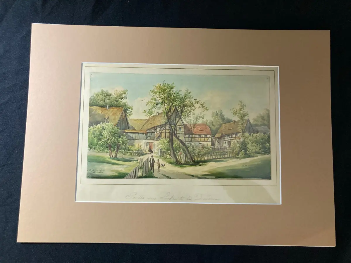Passepartout außen sauber, Zeichnung in super Zustand, Pappe darunter minimal gebräunt