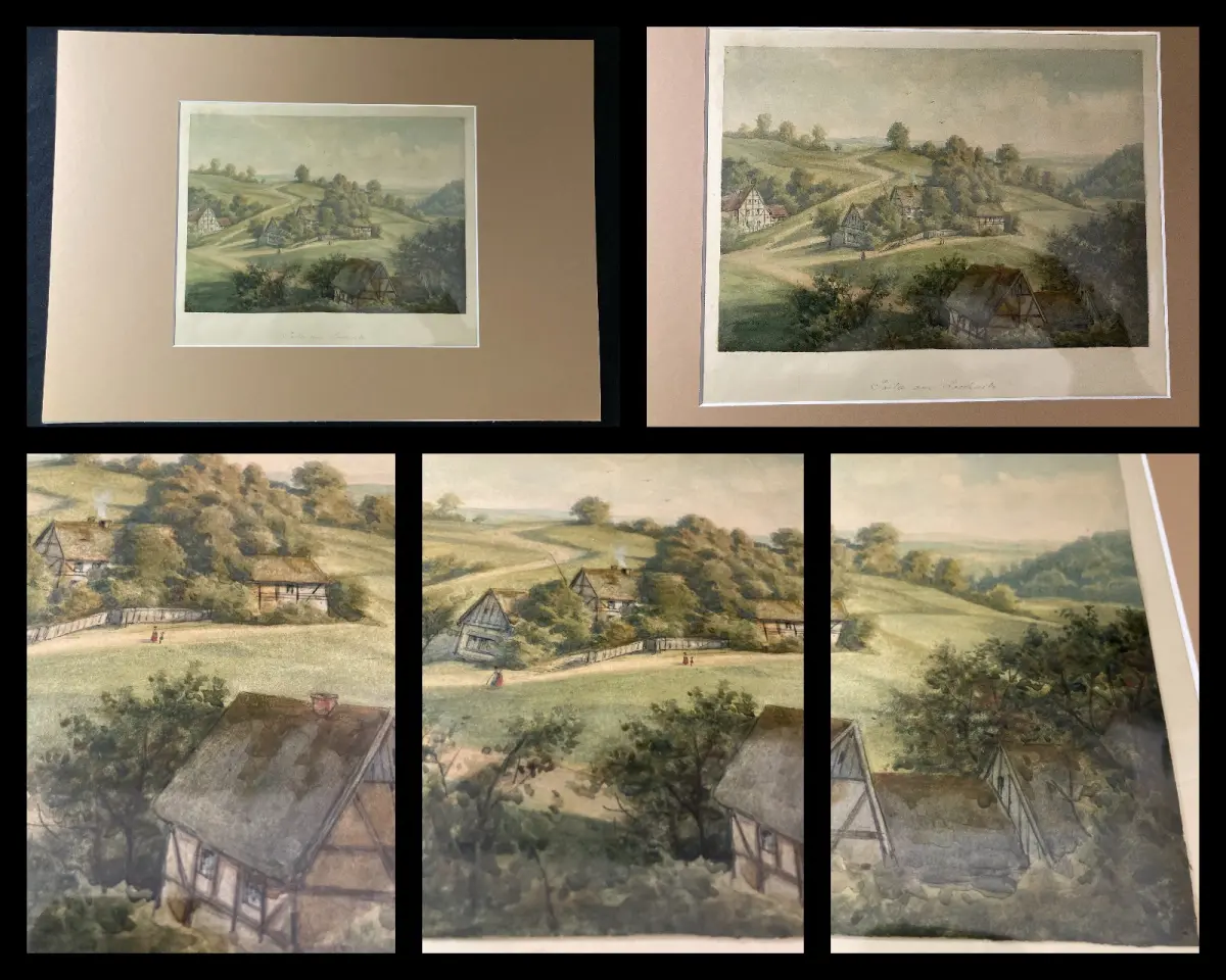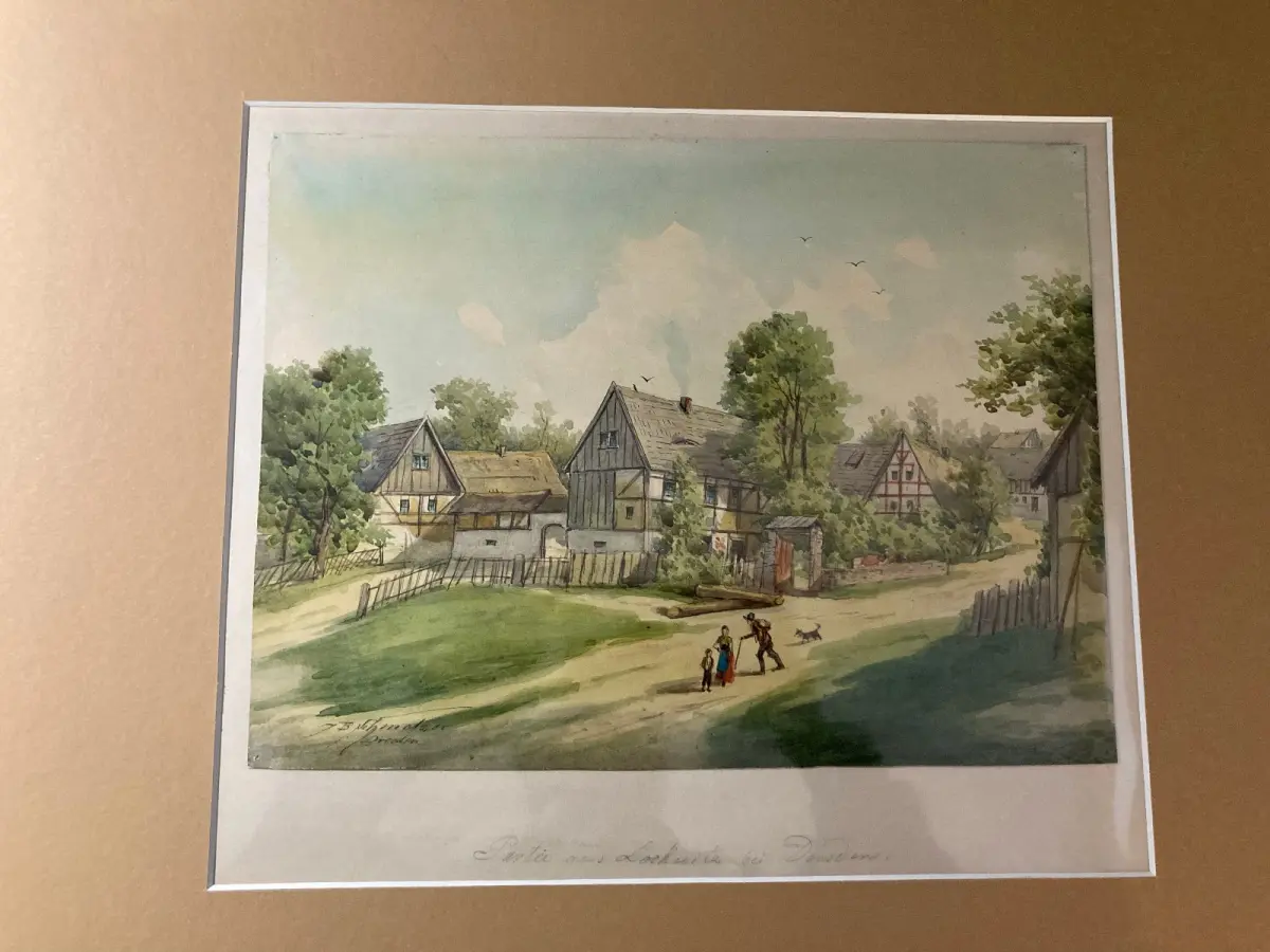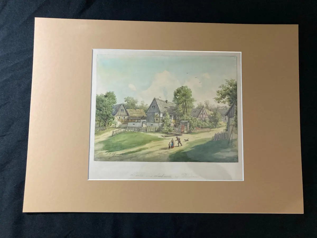 Passepartout außen sauber, verso ein wenig lichtrandig. Zeichnung in super Zustand, Pappe darunter minimal gebräunt
