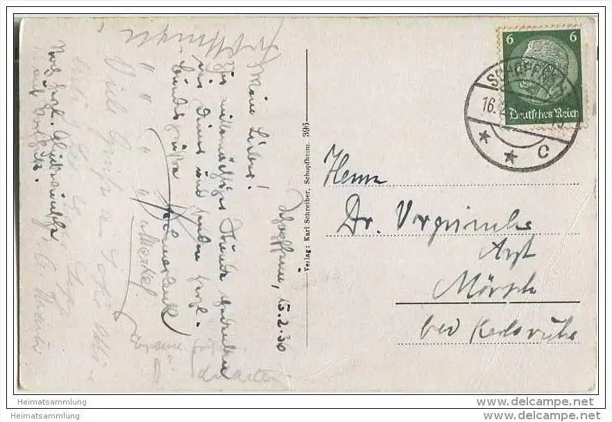 Schopfheim - Gesamtansicht - Verlag Karl Schreiber Schopfheim - Ecke unten links bestossen (G27285) gel. 1936
