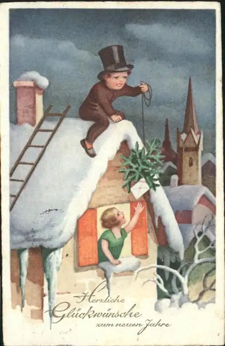 Schornsteinfeger Neujahr Handwerk postalisch gelaufen 1930 Alte Ansichtskarte Postkarte