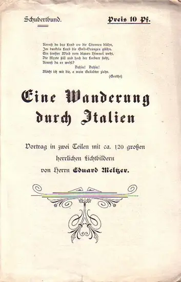 Schubertbund (Berlin). - Meltzer, Eduard: Schubert Bund. Programm zu: Eine Wanderung durch Italien. Vortrag in zwei Teilen mit ca 120 großen herrlichen Lichtbildern.