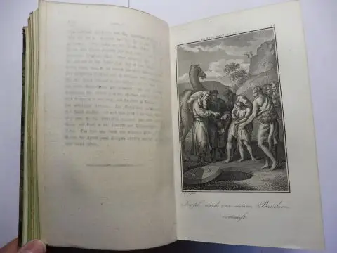 Zweyte (2.) Ausgabe. Leere Vortitelblatt mit Privat-Widmung (Moderne) - Bll. + 2 S. Vorwort + IV (Bilderverzeichn.) + 491 S. Text, u. mit 1 gestochenes Titelblatt (leicht fleckig) und 99 gestochene Tafeln mit Schutzpapier - alle Stiche (bis auf 1-2) gut bis sehr gut erhalten. Papier minimal randgebräunt aber sauber. Gr.-8°, O(Schwarzgraubuntpapiermarmor.)-HalbLeder der Zeit - Spuren von Bücherwurm (Alt) - Rücken mit Titelschild u. goldgepr.-Ornamente berieben oder ausgekratzt - grünfarbig.-Ganzschnitt geringf. nachergraut. Ecken bestossen. Gut erhalten aber insges