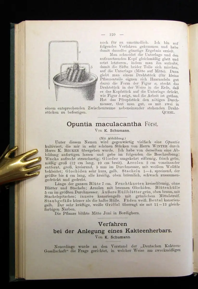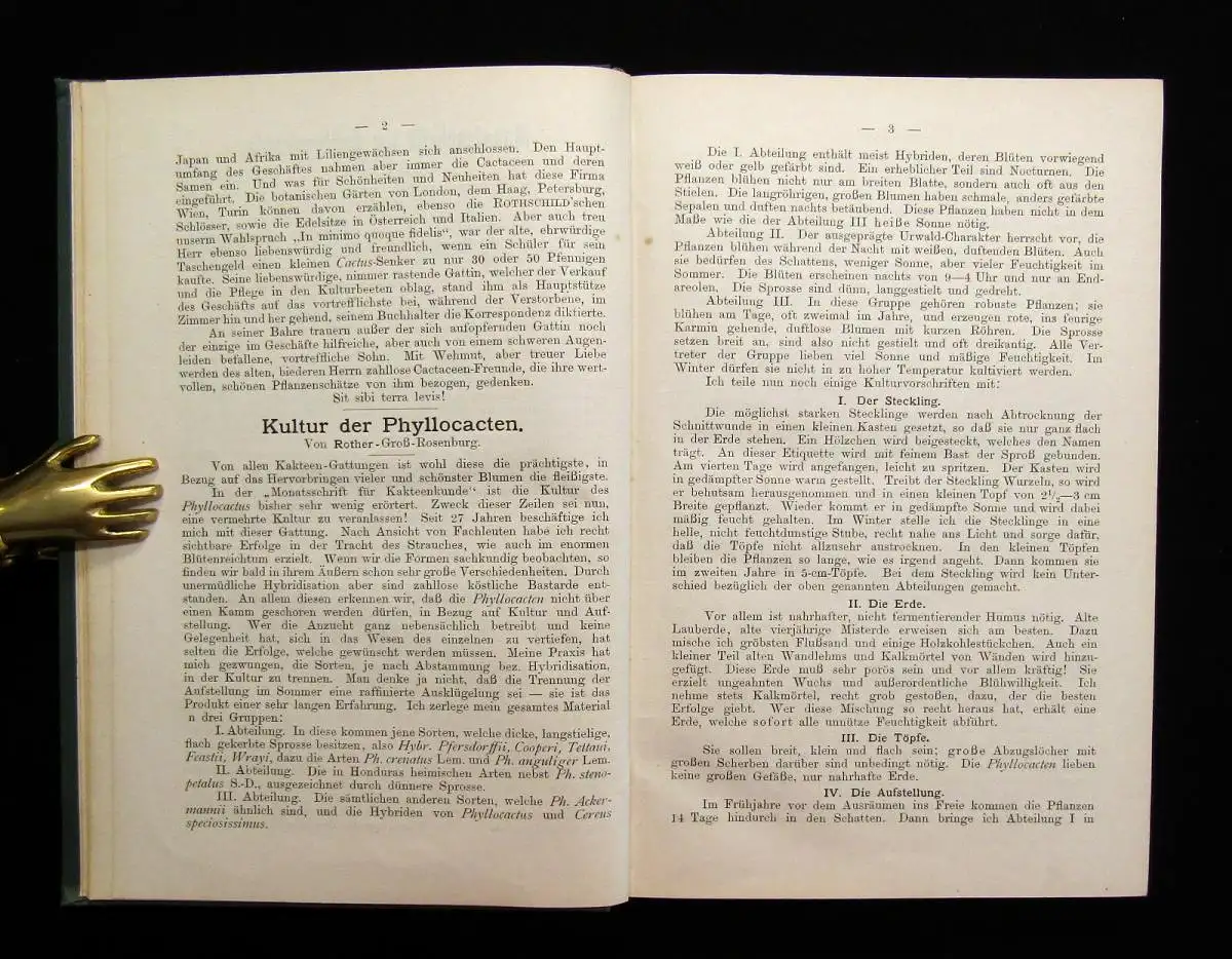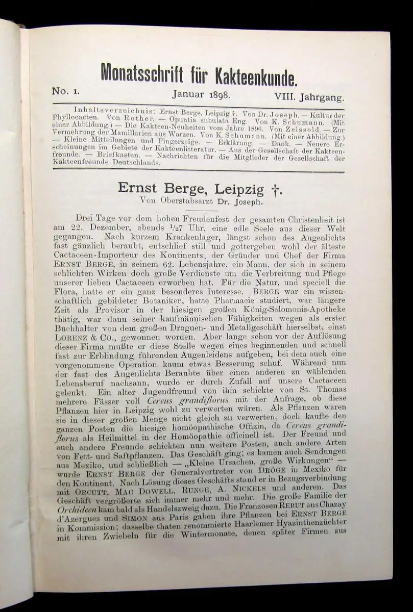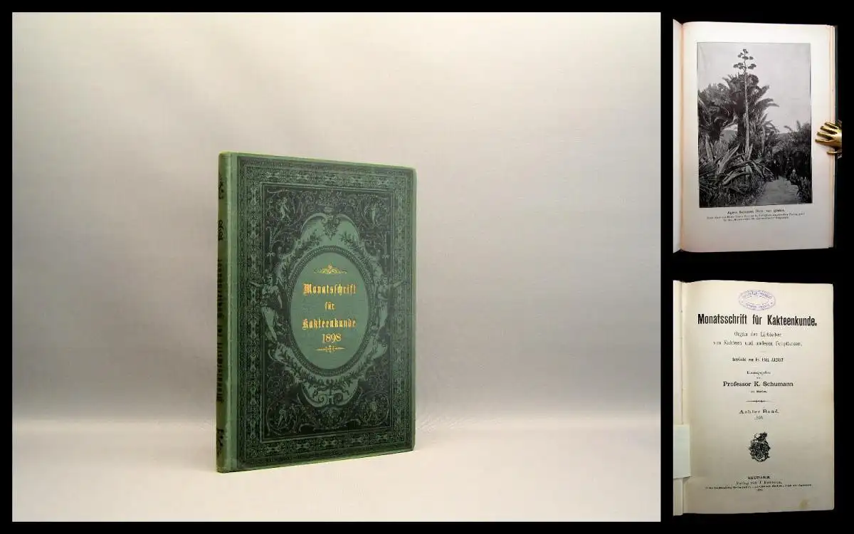 Schumann, K.; Arendt, Paul Monatsschrift für Kakteenkunde Achter Band Organ der Liebhaber von Kakteen und anderen Fettpflanzen Neumann - Neudamm - 1898 Sprache: deutsch Größe: gr. 8 ° (ca. 24 x 16 cm) Kollation: 192 S. ; Pappband Zustand: Einband leicht berieben und bestoßen. Papier gering gebräunt, einige Seiten etwas stärker, stellenweise leicht braun- und fingerfleckig. Stempel der deutschen Kakteengesellschaft auf Titel und hinterem Spiegel. Bilder sind ein Bestandteil der Zustandsbeschreibung. Zustand wurde bereits im Preis berücksichtigt.