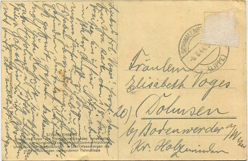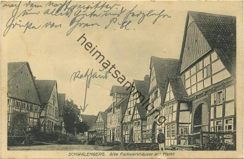 Schwalenberg - Alte Fachwerkhäuser am Markt - Verlag J.H. Aldegarmann Schwalenberg - minimaler Einriss unten Mitte - Marke entfernt (E18084) gel. 1944