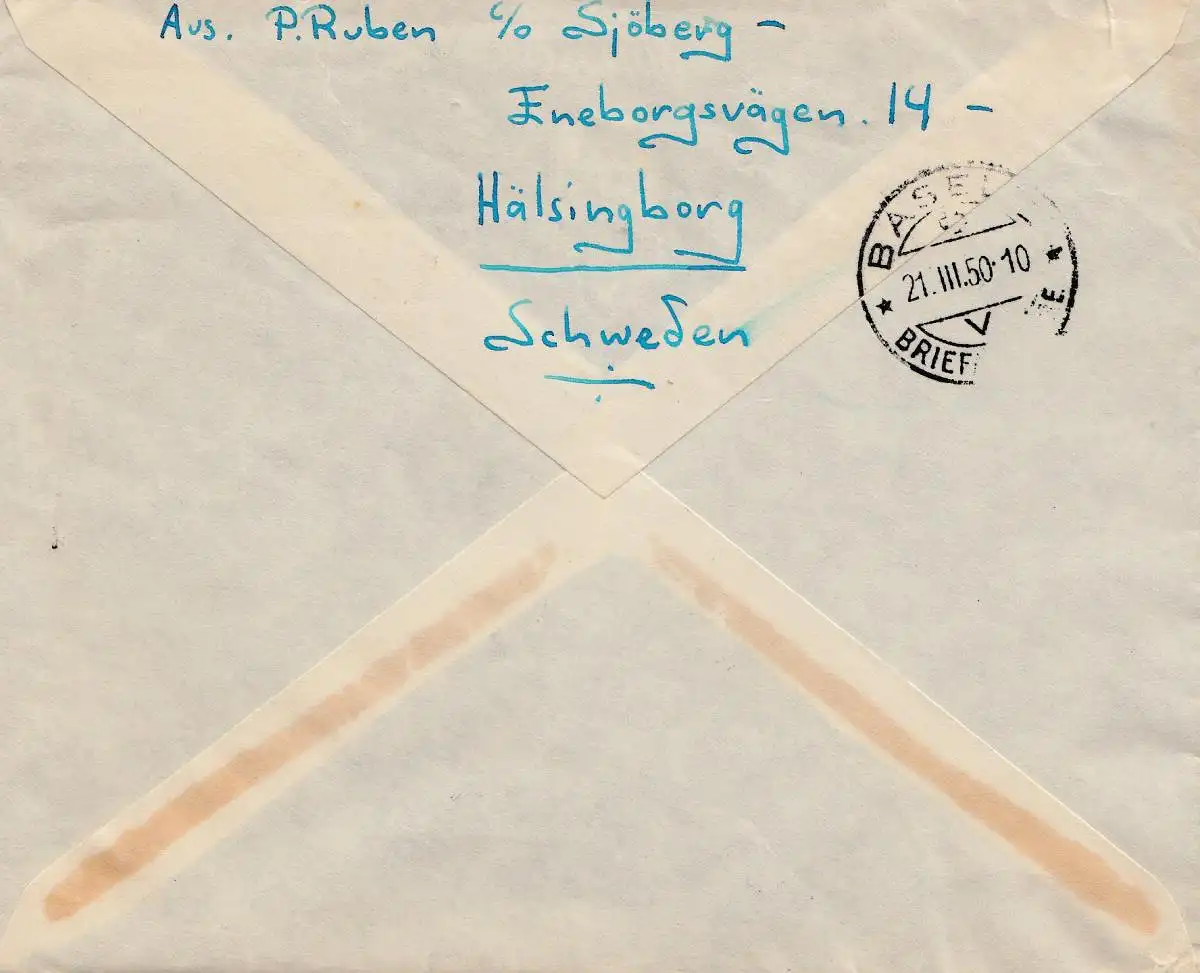 Schweden: 1950: Einschreiben Hälsingborg nach Basel, Devisenkontrolle