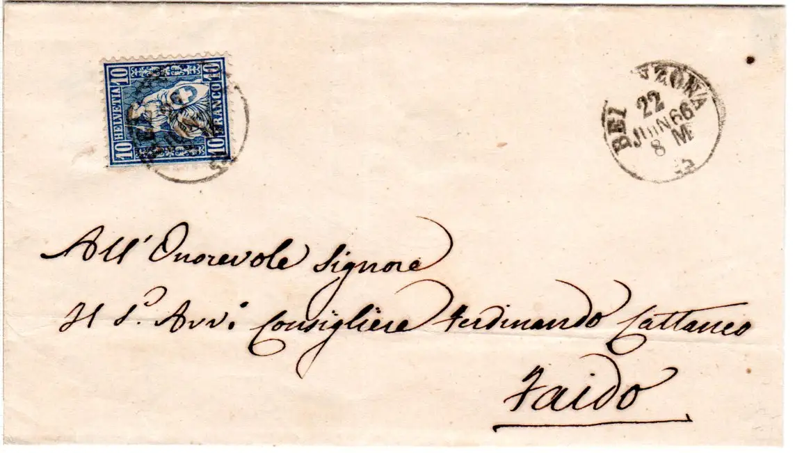 Schweiz 1866, K1 BELLINZONA auf m. 10 C. n. Faido