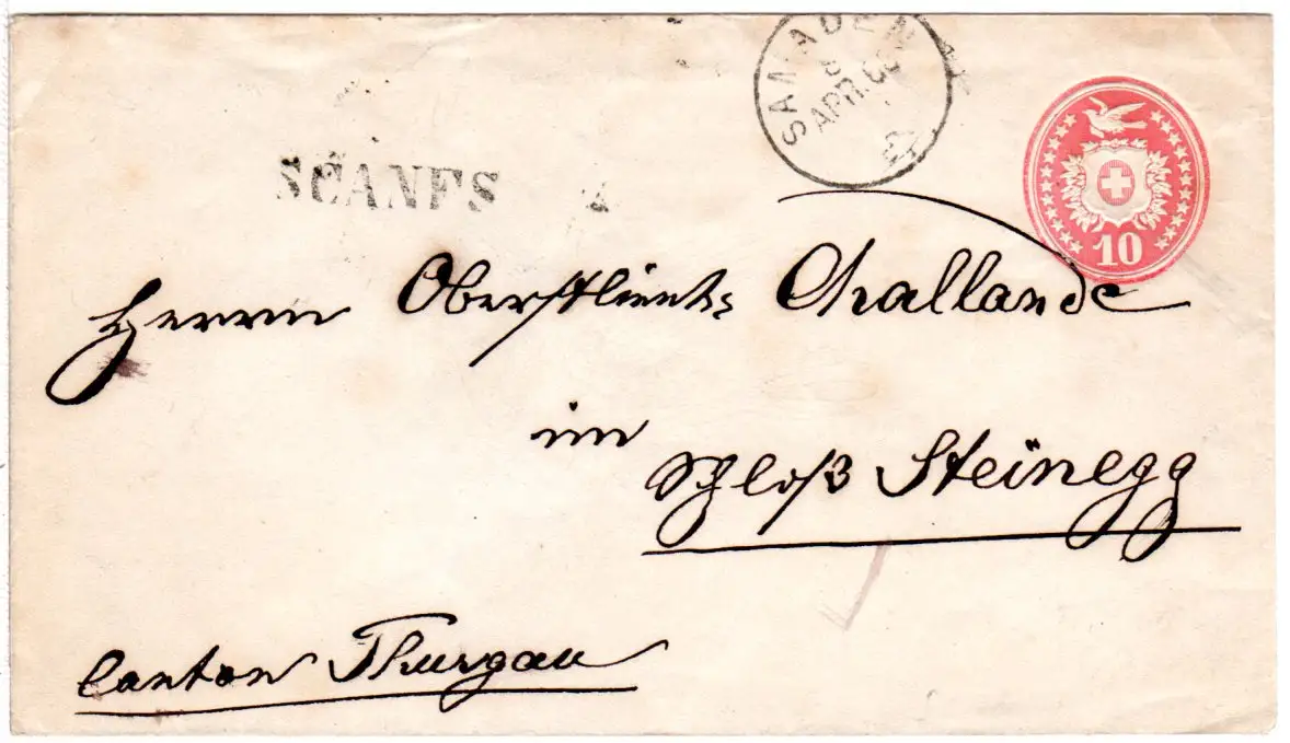 Brief v. Scanfs, Graubünden n. Schloss Steinegg, Thurgau.