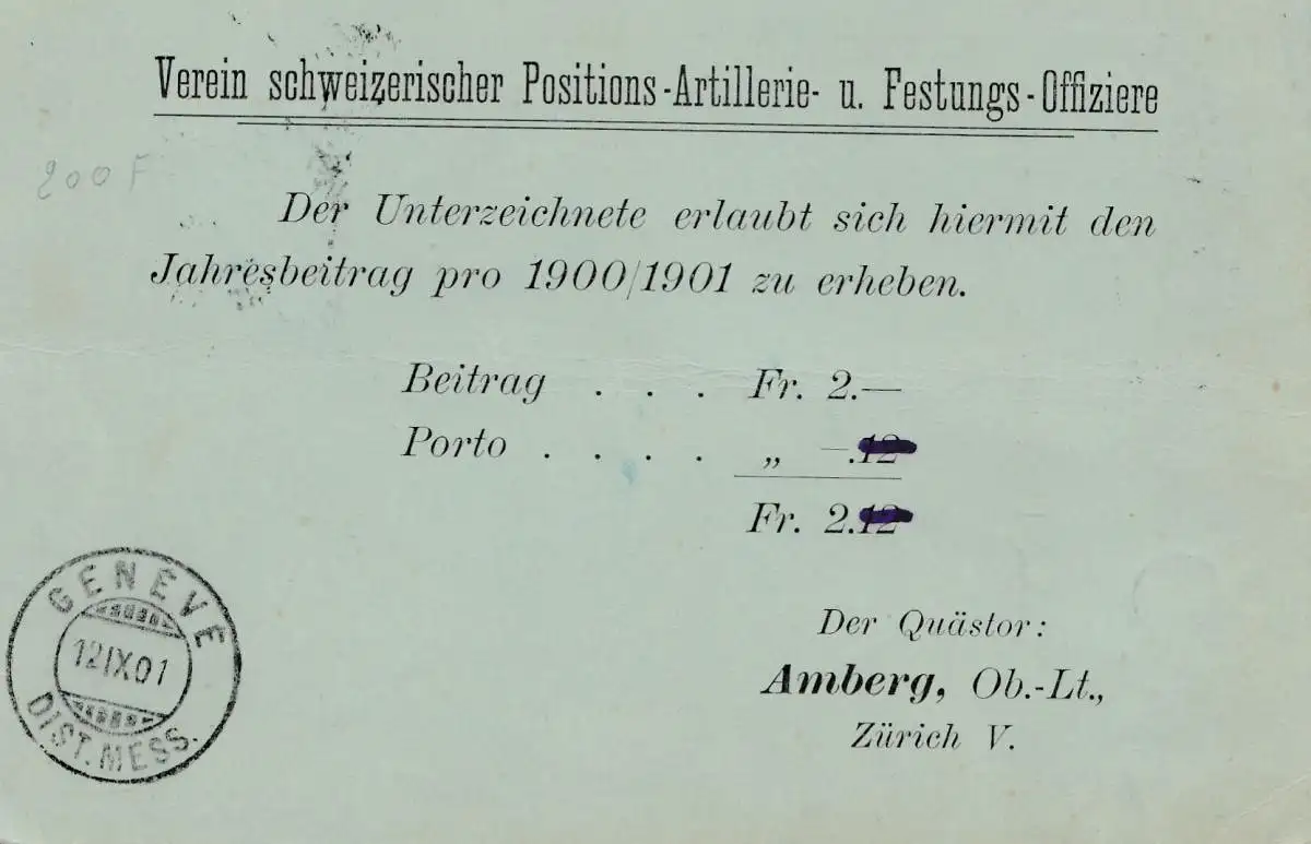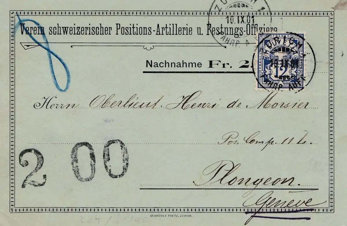 Schweiz: 1901: Zürich nach Genf, Nachnahme