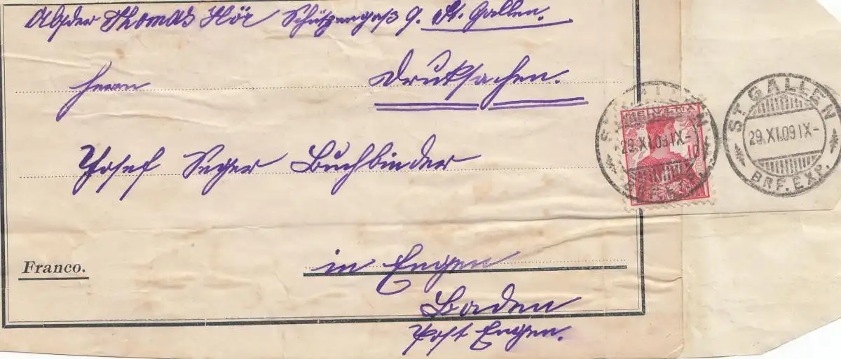 Schweiz: 1909: ST. Gallen nach London, Adressteil