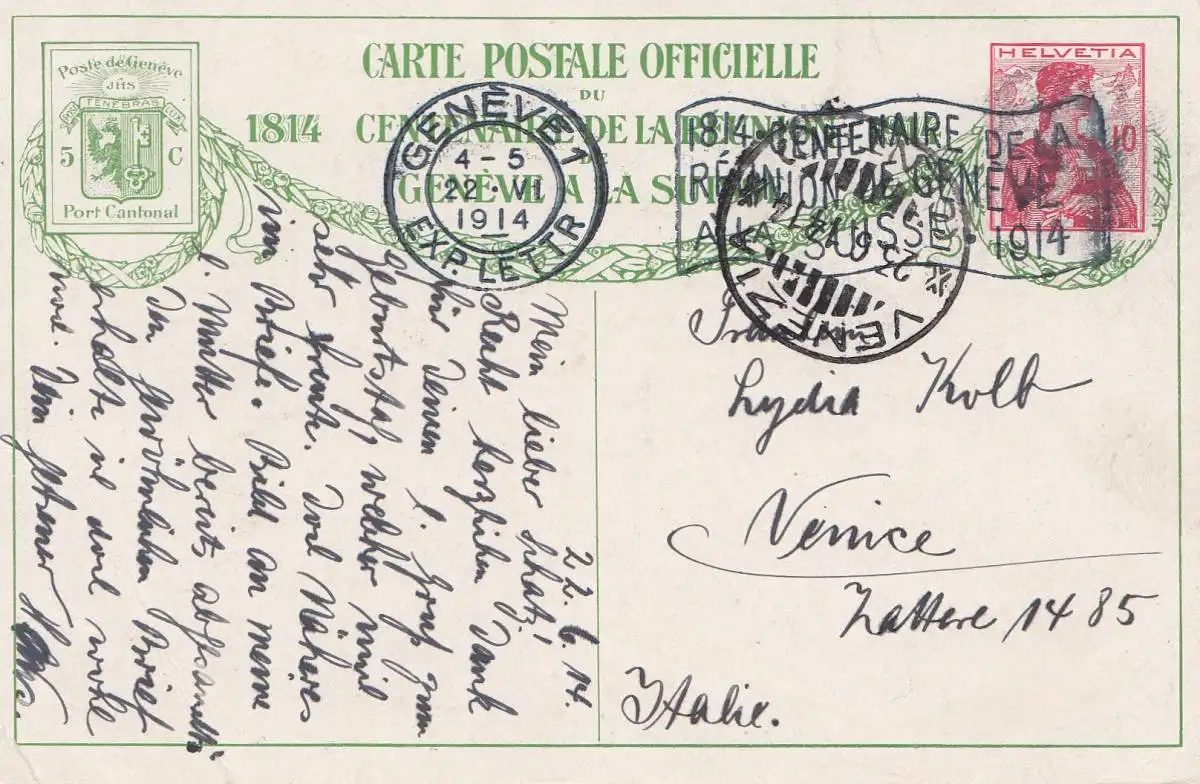 Schweiz: 1914: Ganzsache mit Bild Nr. 3, aus Genf