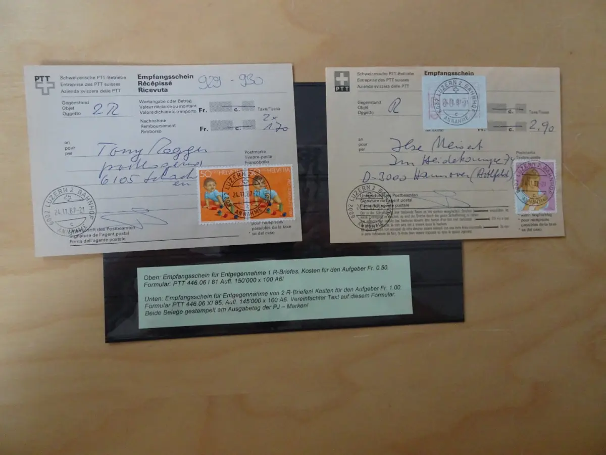 Schweiz 2 Empfangsscheine mit Pro Juventute Marken (15991)