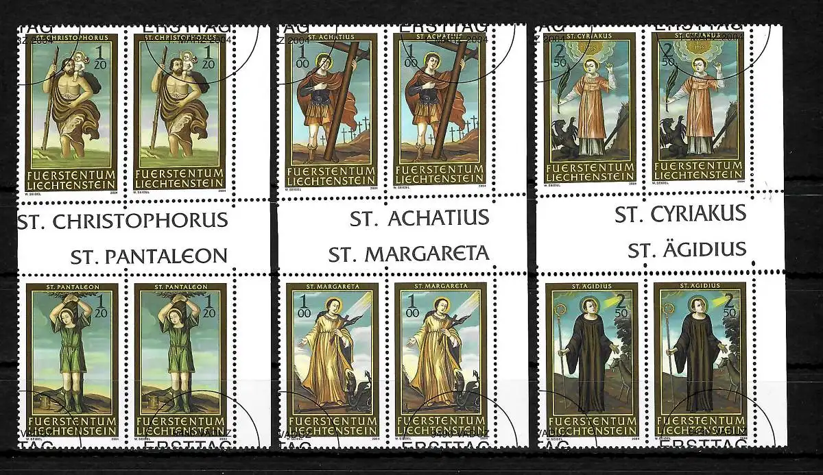 Schweiz 2004: Schutzheilige Serie II, 3x Viererblocks, gestempelt