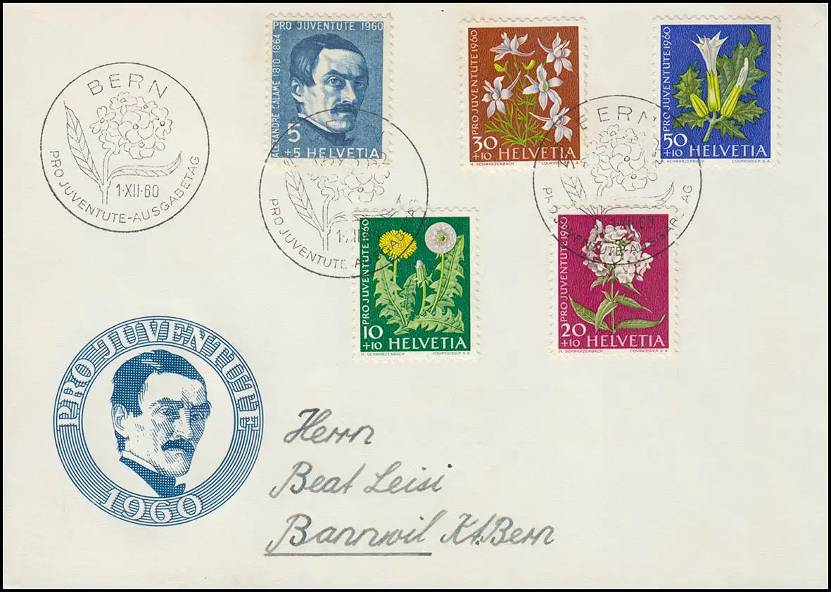 Schweiz 722-726 Pro Juventute 1960, Satz auf Schmuck-FDC ESSt Bern 1.12.1960