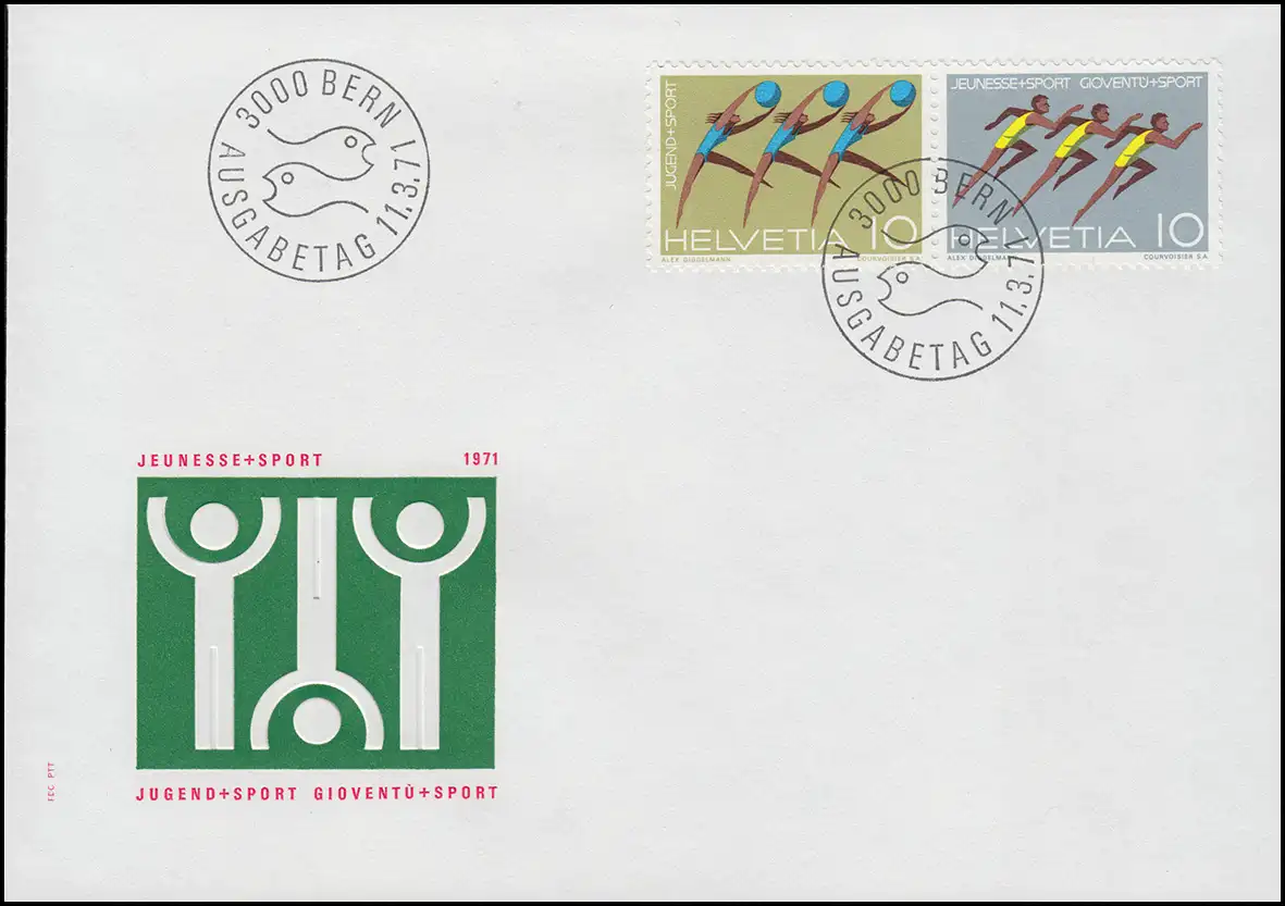 Schweiz 940-941 Zusammendruck Jugendsport 1971, FDC ESSt Bern 11.3.1971