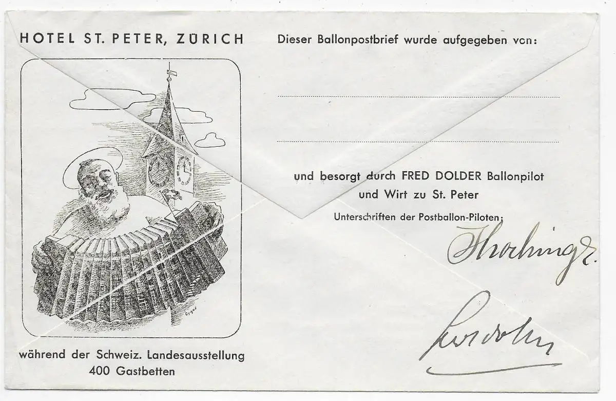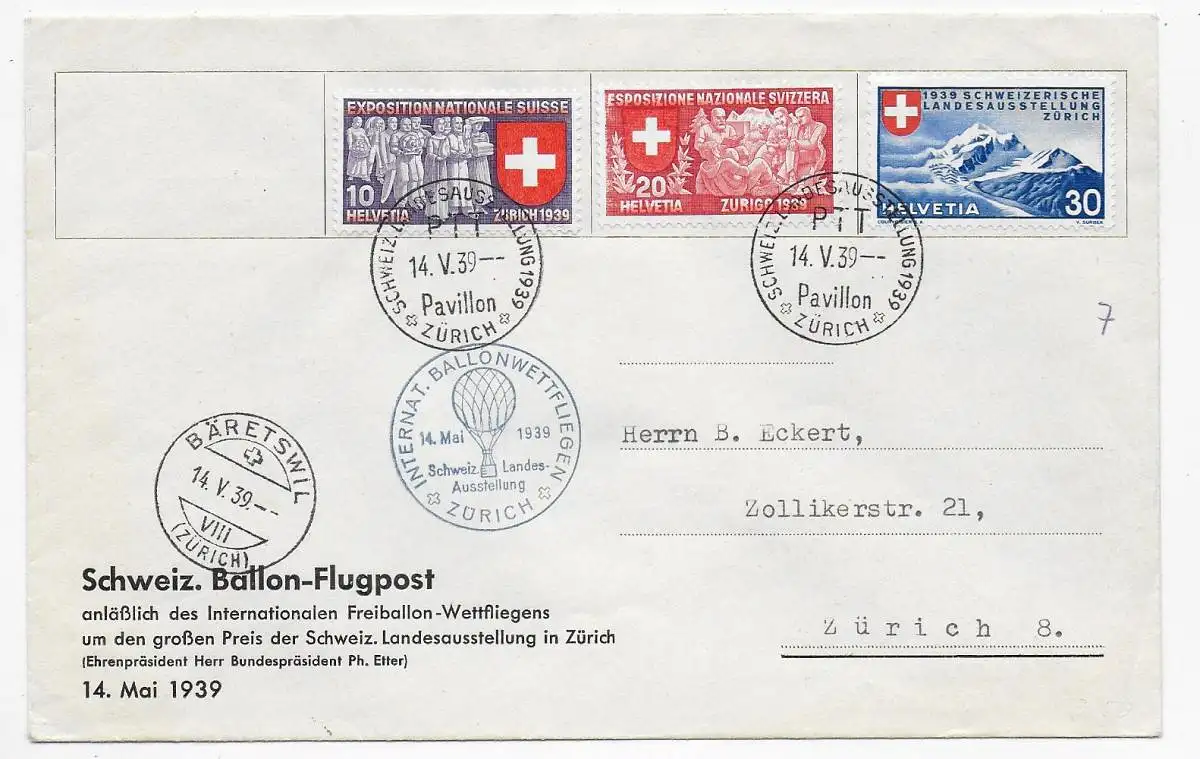 Schweiz. Ballon-Flugpost 1939 Zürich