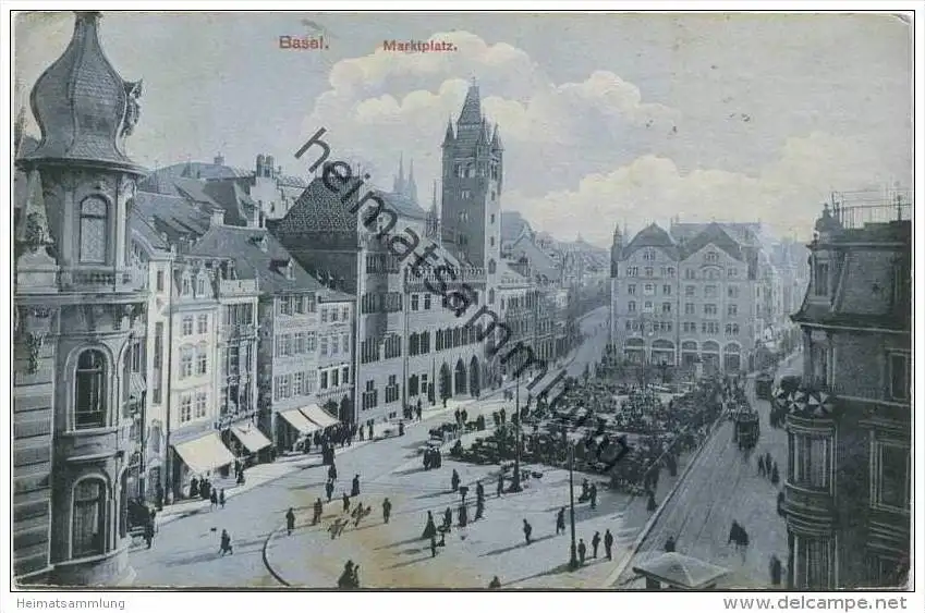 Schweiz - Basel - Marktplatz - Verlag G. Metz Basel - Gebrauchsspuren - Fleck unten Mitte (G33248) gel. 1909